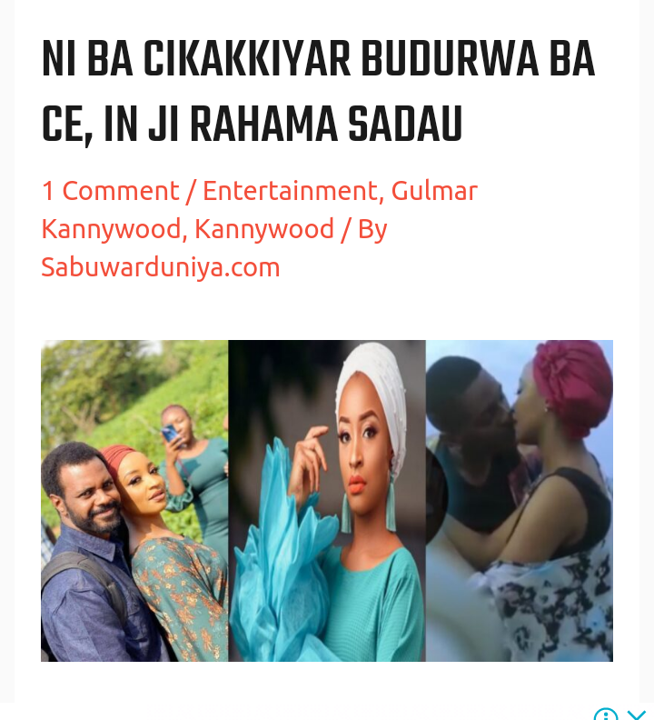 A shafukan sada zumunta na zamani wato Social Media Rahma Sadau, ta bayyana cewa ita ba cikakkiyar budurwa bace kamar yadda kuke gani a jikin hoton labarin.